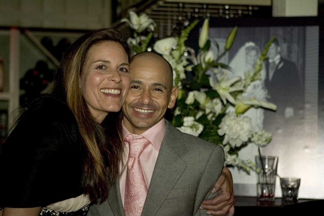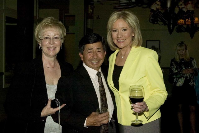 Trainer Danny Velasquez and wife Sharon with television news reporter Ann Martin