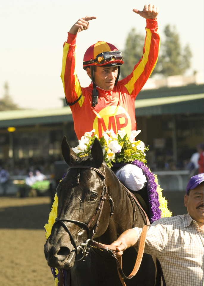 His red and gold silks have been carried not only by Silverbulletday–filly champion in 1998 and 1999 with victories including the Breeders’ Cup Juvenile Fillies and Kentucky Oaks–but also 3-year-old champion Real Quiet following victories in the 1998 Kentucky Derby and Preakness Stakes and 2007 sprint champion Midnight Lute following the first of two Breeders’ Cup Sprint victories.